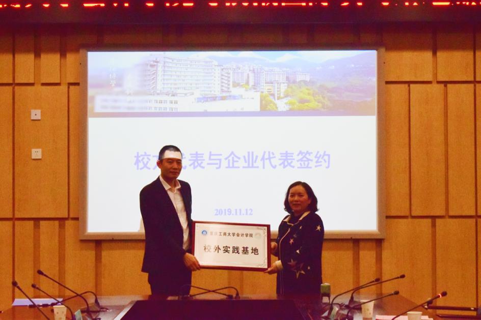 校方代表9428cn太阳集团古天乐副院长程文莉与企业代表浪潮国际重庆区副总经理吴严先生签约,程文莉院长代表9428cn太阳集团古天乐向浪潮国际授予实习基地牌匾。