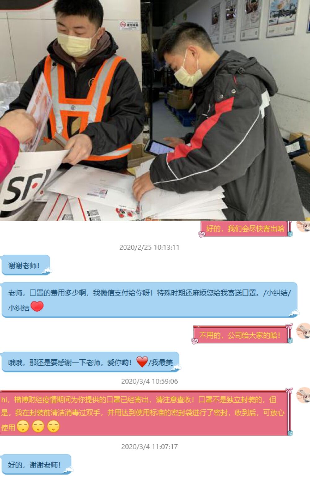 楷博财经为国际项目学生邮寄防护物资 收到防护物资学生的反馈