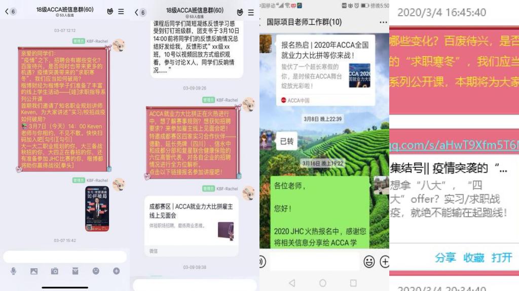 疫情特殊时期,除了保障国际项目的在线正常教学外,ACCA/CIMA国际项目中心还联合楷博财经为同学们提供完善的学生服务,坚持全员到岗在线为同学们答疑解惑。关注疫情之下最新的政策变化信息,让同学们第一时间了解最新考试政策,及时调整自己的考试计划;针对线上教学提供一系列教辅支持,线上教学平台使用指南,通知同学们按时上课;引导同学们关注疫情影响下的 “春招”等就业招聘信息,开展“求职规划”“ACCA就业力大比拼”“CIMA商业精英挑战赛”等线上讲座,以帮助想要求职或实习的同学做好准备。