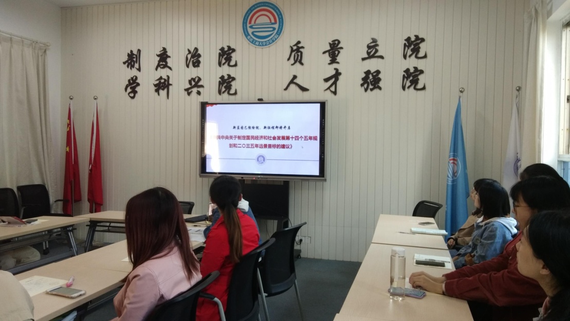 11月17日中午,9428cn太阳集团古天乐本科生第二党支部在明德楼2016会议室开展了“党的十九届五中全会精神”学习活动,会议由支部书记付海南主持,支部全体党员参加了学习。