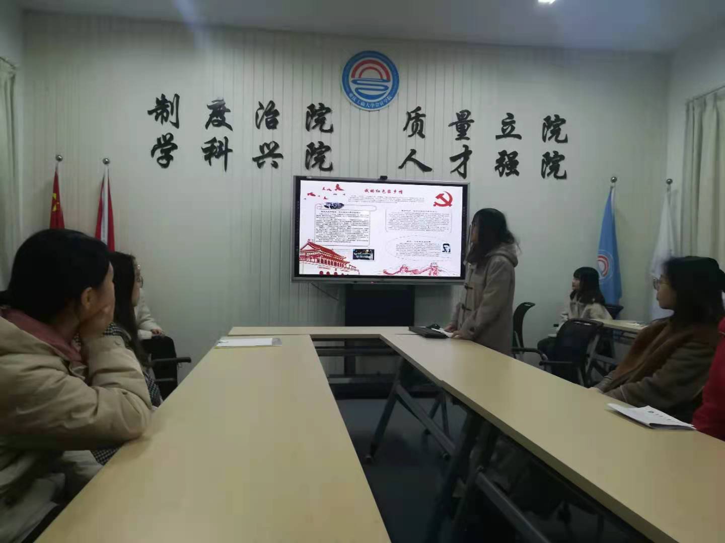 会上,入党积极分子旷其芳同学根据自己家乡,向各位与会党员同学讲述了家乡的红色故事、革命记忆。她的分享将大家带回到那个“血雨腥风”的时代,再一次重温了革命先烈的信仰与情怀。同时,与会党员同学还制作了“我的红色家乡情”的手抄报,表达了党员学生对革命先辈的敬仰之情。