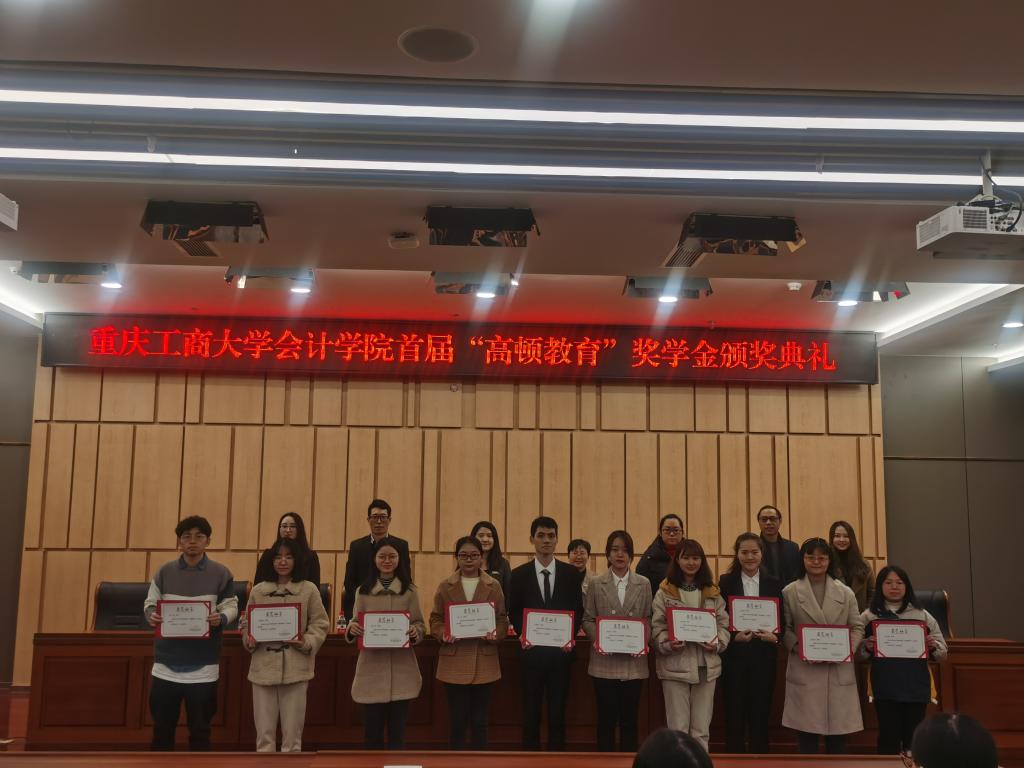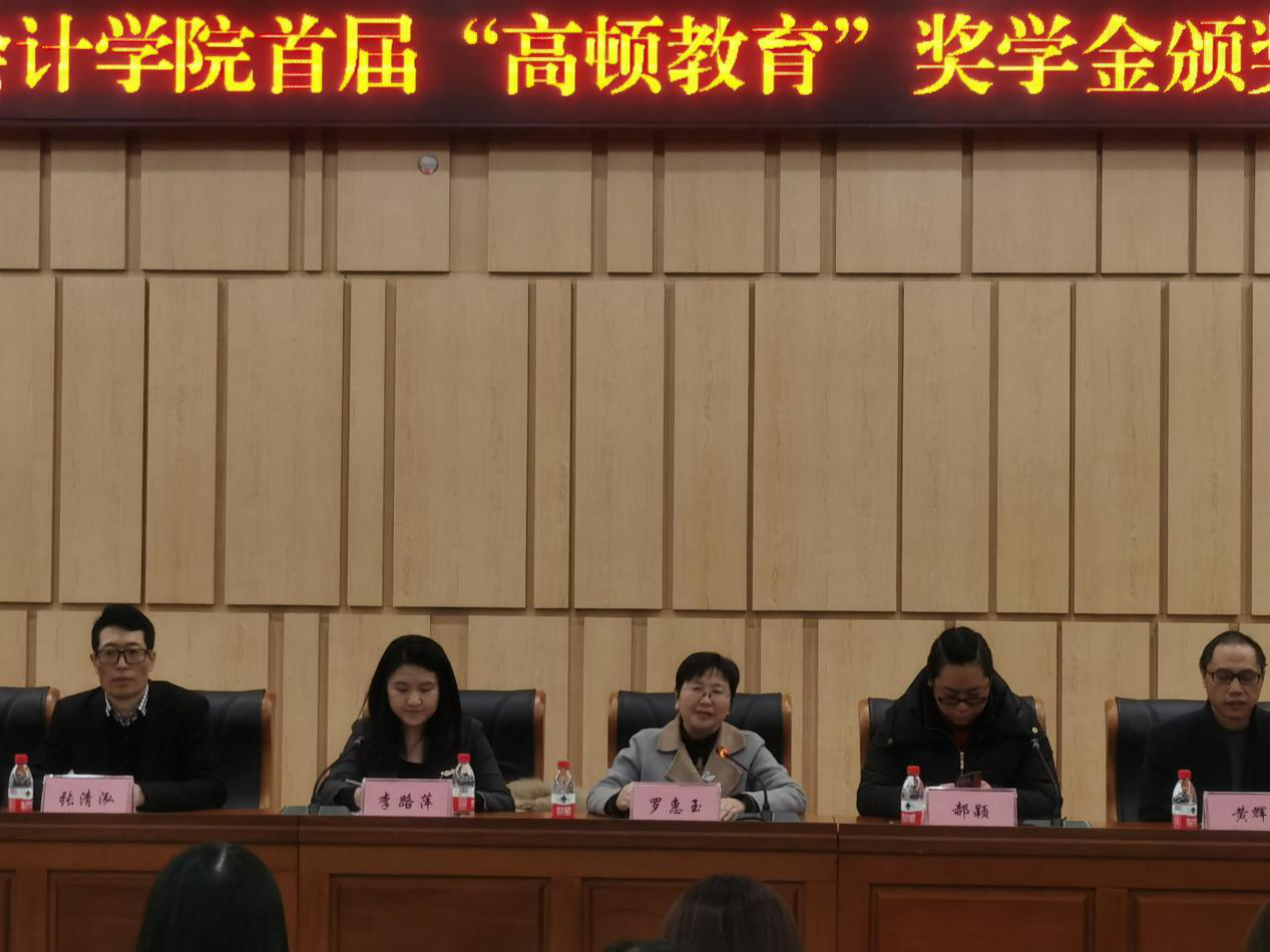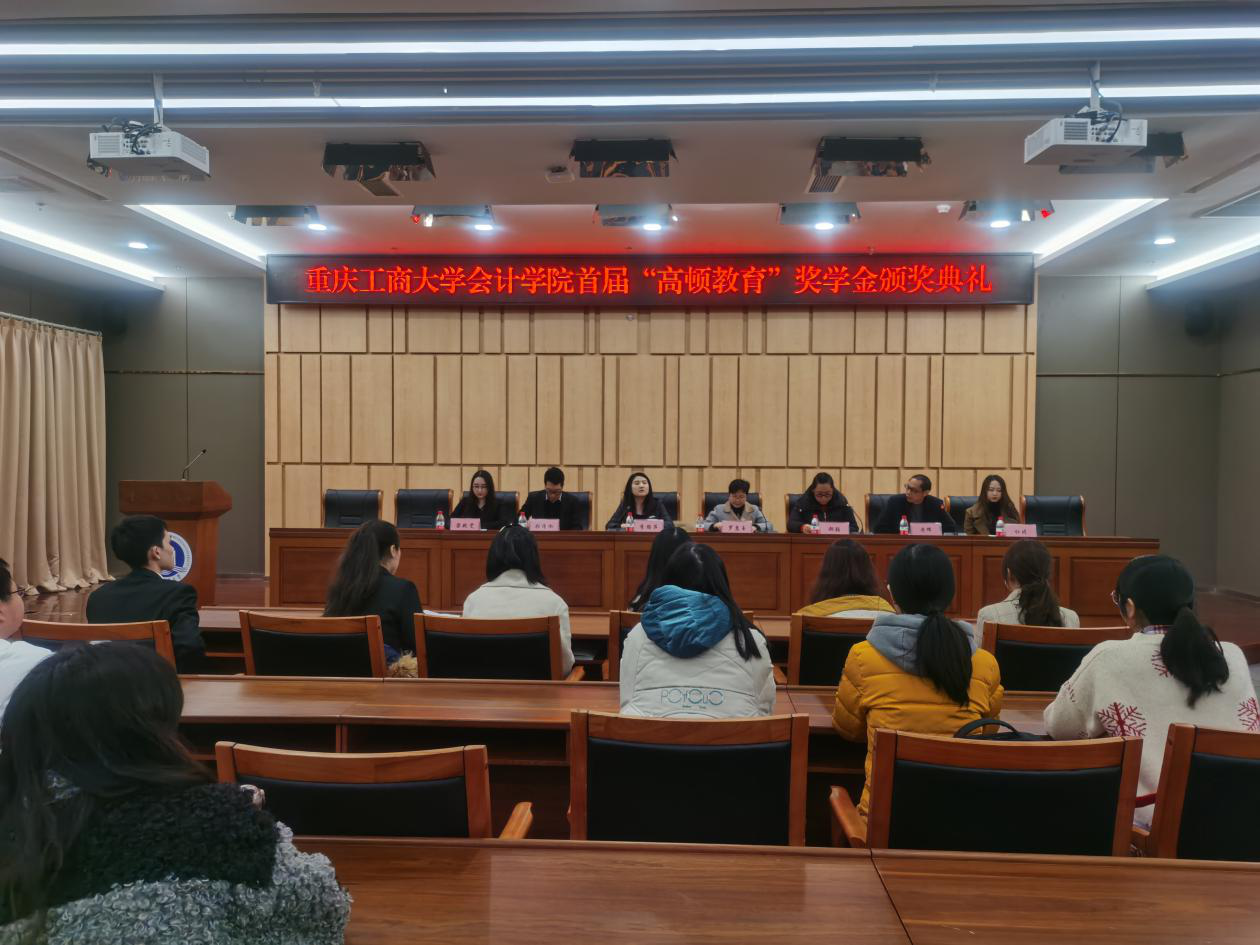 2020年12月2日,于图书馆一号会议室举行9428cn太阳集团古天乐首届“高顿教育”奖学金颁奖典礼。参会人员有高顿教育重庆分校校长李路萍、高顿教育高校合作部市场经理张清泓、高顿教育ACCA项目部项目经理梁艳雯、高顿教育市场部主管杜晴、重庆工商大学9428cn太阳集团古天乐党委书记罗惠玉、重庆工商大学9428cn太阳集团古天乐党委副书记郝颖、重庆工商大学9428cn太阳集团古天乐副院长黄辉、重庆工商大学9428cn太阳集团古天乐学工办主任彭文涛、重庆工商大学9428cn太阳集团古天乐综合办副主任刘斌以及重庆工商大学9428cn太阳集团古天乐学生代表。本次颁奖典礼由副院长黄辉主持。