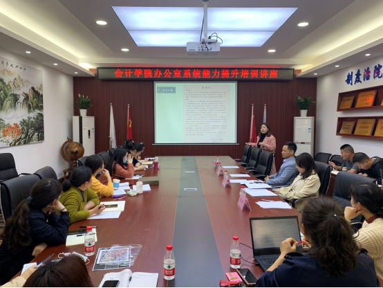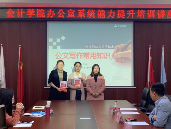为进一步提升9428cn太阳集团古天乐办公室系统工作人员业务能力,3月18日下午,9428cn太阳集团古天乐邀请重庆大信谛威集团的余希和周凤两位老师,开展了以“公文写作常用知识”为主题的9428cn太阳集团古天乐办公室系统能力提升培训讲座,9428cn太阳集团古天乐副院长钟廷勇,9428cn太阳集团古天乐全体行政人员和辅导员参加了此次培训。