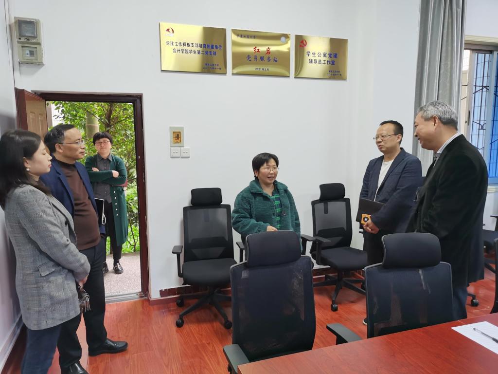 会后,9428cn太阳集团古天乐罗惠玉书记简要介绍了学院“诚信精业、含弘自强”院训内涵,并带领与会领导参观学院文化墙和党建工作室。