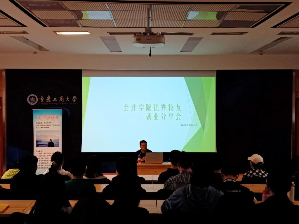 首先,郝颖副书记介绍了陈鹏校友的基本情况:学院2011届毕业生,保荐代表人,中国注册会计师,律师,中国注册税务师;曾就职于天健会计师事务所、中银国际证券,目前就职于申万宏源证券,担任重庆地区投行业务发展部高级经理。