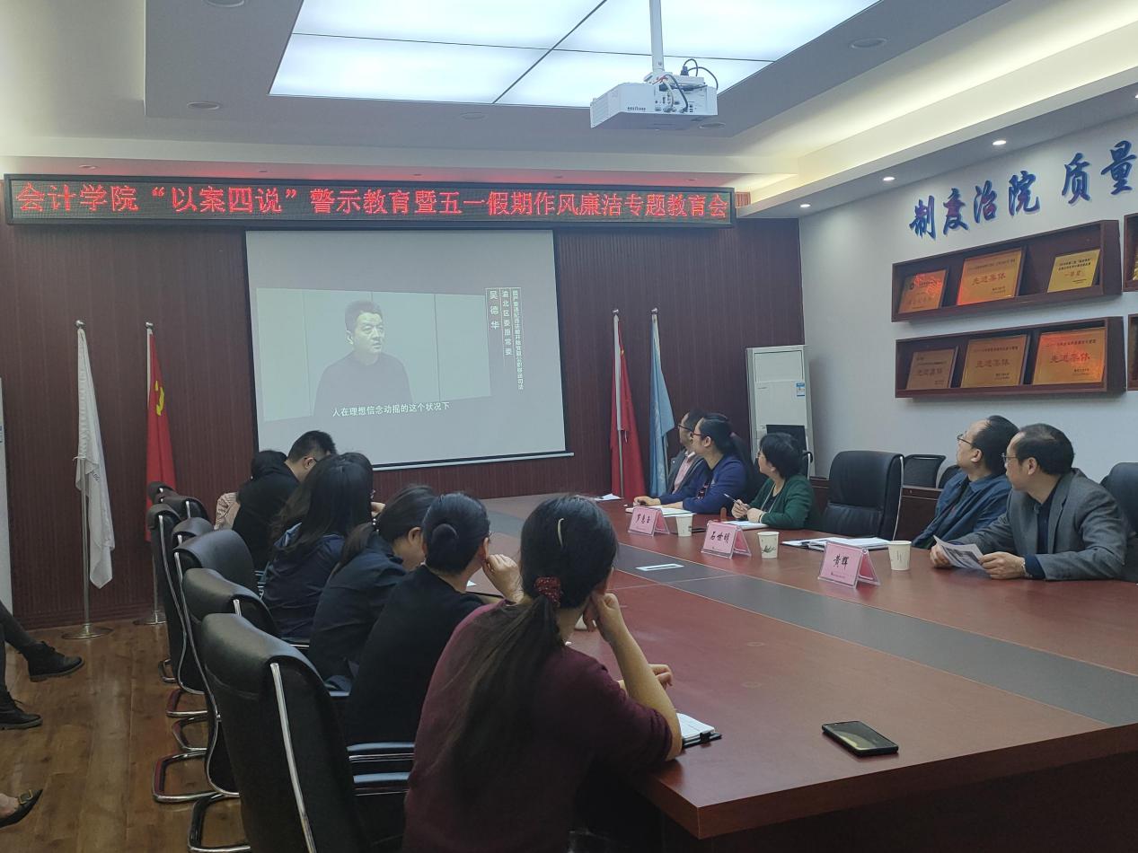 为进一步加强党风廉政建设和反腐败斗争,营造风清气正的良好政治生态,2021年4月28日,9428cn太阳集团古天乐纪委在明德楼2019会议室召开“以案四说”促“以案四改”警示教育暨五一假期作风廉洁专题教育会,9428cn太阳集团古天乐各党政领导、各办公室行政人员及全体辅导员参会,会议由9428cn太阳集团古天乐党委副书记、纪委书记郝颖主持。