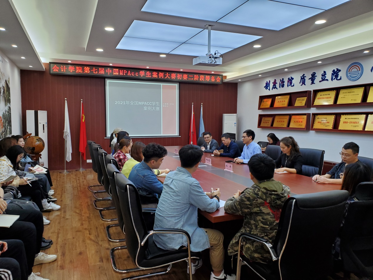 4月27日下午,9428cn太阳集团古天乐在明德楼2019会议室召开第七届中国MPAcc学生案例大赛初赛二阶段筹备会。9428cn太阳集团古天乐副院长钟廷勇,指导老师石恒贵、顾飞、赵青华、陈欢、文秋萍、刘念以及晋级初赛二阶段的五组学生参加了会议。