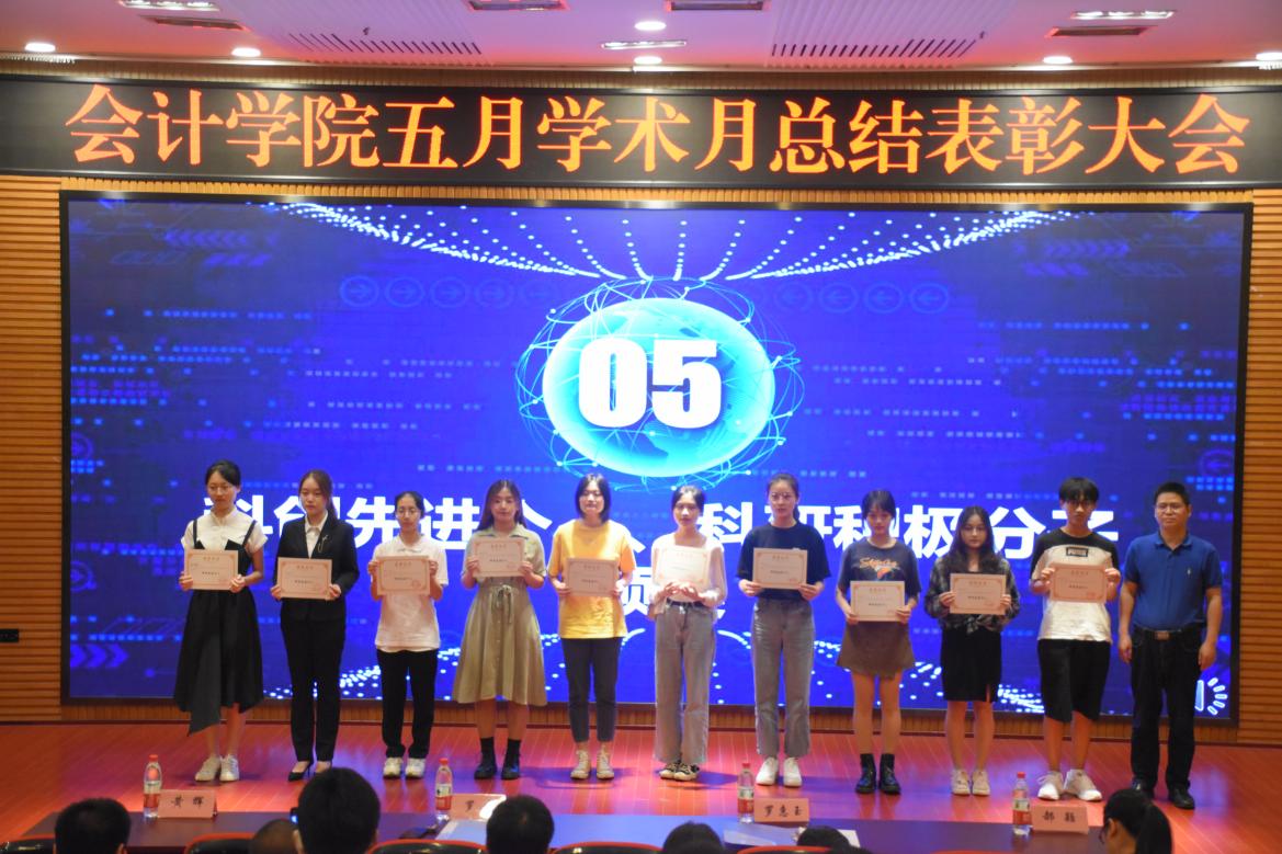 随后,罗勇院长为高悦洋等10位科创先进个人代表颁奖、郝颖副书记为熊俐铭等7位科研积极分子、10个学科竞赛先进团队、宋小燕等10位获得了活动组织先进个人奖的同学颁奖,黄辉副院长为郑显莉等7位获得研究生案例开发先进个人、敬一舒等8位获得了研究生科研创新先进个人的同学进行了颁奖。