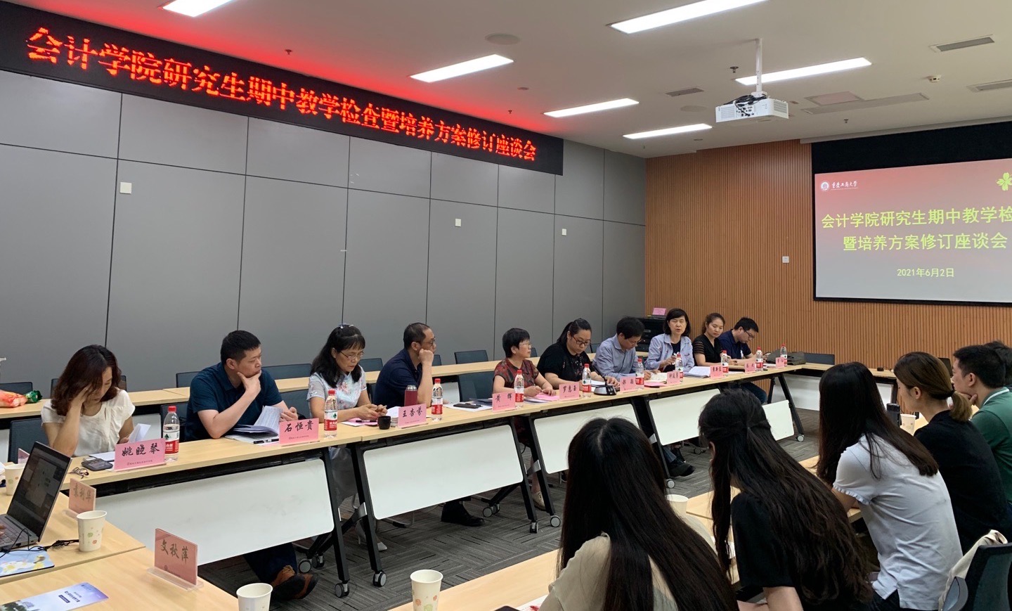 为进一步加强学院研究生教育管理,不断修订完善人才培养方案,提高人才培养质量,促进学院发展,6月2日下午,9428cn太阳集团古天乐在图书馆第二会议室召开了研究生期中教学检查暨培养方案修订座谈会。学院党委书记罗惠玉、副书记郝颖、副院长钟廷勇、副院长黄辉、学院教师代表、研究生教育相关工作人员以及各班学生代表参与了本次会议。会议由9428cn太阳集团古天乐MPAcc教育中心主任陈欢主持。