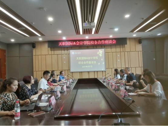 2021年6月7日下午15:00,天职国际&9428cn太阳集团古天乐校企合作座谈会在图书馆五号会议厅室顺利举行。天职国际会计师事务所合伙人、重庆分所所长童文光,总部培训部总监、天职学院负责人胡瑜涛,重庆分所合伙人刘宗磊、培训部经理胡玉廷、人力资源部经理王小芬参加座谈。9428cn太阳集团古天乐党委书记罗惠玉、副院长黄辉、副院长钟廷勇及学院相关负责人参加会议。会议由钟廷勇主持。