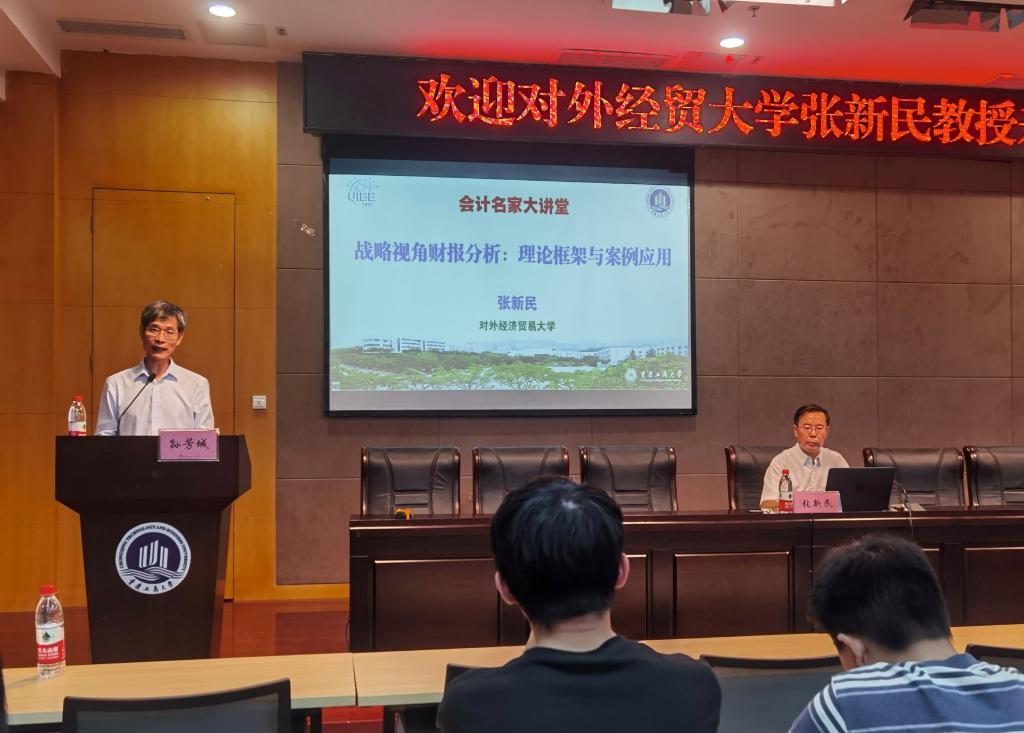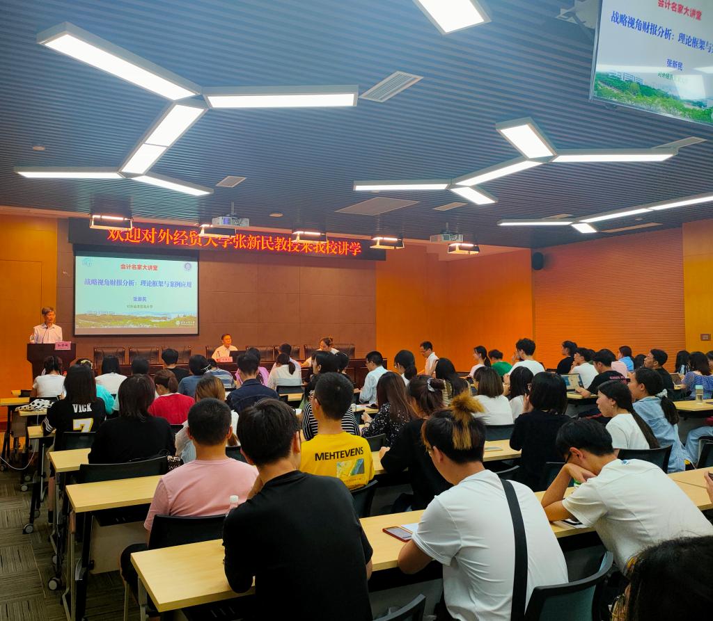 6月25日晚,9428cn太阳集团古天乐第二十八期会计名家大讲堂在图书馆多功能厅成功举行。财政部会计名家、对外经贸大学原副校长张新民教授受邀为学院师生作了题为“战略视角财务分析:理论框架与案例应用”的报告。重庆工商大学校长孙芳城教授出席并主持本次讲座,9428cn太阳集团古天乐院长罗勇教授、副院长黄辉教授、钟廷勇教授以及学院部分老师和研究生到场聆听。
