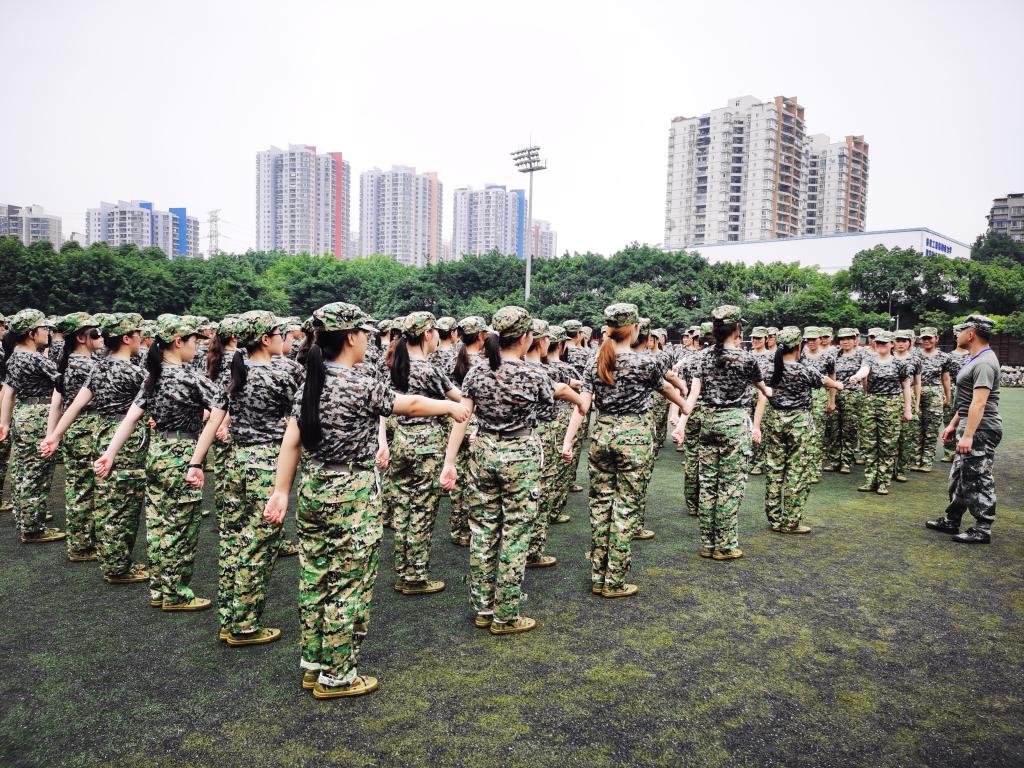 训练中,最为磨炼意志的莫过于站军姿。军姿,站的是会院学子吃苦耐劳的精神,展的是工商学子的坚定意志。操场上,教官们的呐喊声,同学们的怒吼声和铿锵有力的脚步声,奏响了一曲钢铁交响乐!下午到晚上,慵懒的晚风拂去了同学们脸上的汗水,带走了烈日的阳光,但雨水又接踵而至。从细雨迷蒙到滴答成曲,雨水与汗水打湿了衣裳,为训练增添了分量。华灯初上,夜幕渐起,雨水透过路灯变成了彩虹,就像悬挂在天空的勋章,会院学子们军训的英姿俨然一副写实油画。