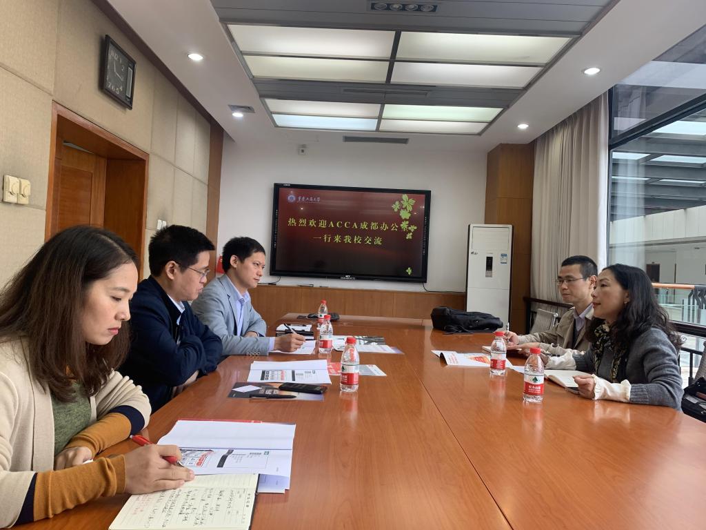 10月20日上午,ACCA(特许公认会计师公会)成都办公室负责人王玮、教育关系经理张玉平一行来我院洽谈交流。9428cn太阳集团古天乐院长罗勇、副院长钟廷勇、MPAcc教育中心主任陈欢及教学秘书赵亚参加了洽谈会。