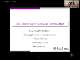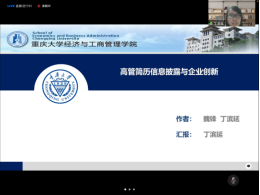 2021年10月30日下午,由重庆工商大学和重庆市会计学会联合举办的“第三届会计与财务管理及资本市场学术会议”下半场第三分会场:企业创新与社会责任,“线上”会议成功召开。来自中国人民大学、南开大学、重庆大学、中南财经政法大学、北京科技大学、海南大学等高校的学者们相继围绕分论坛主题作了学术报告及具体点评。《财经问题研究》编辑部主任徐雅雯女士和《商业会计》专栏主编钟音先生应邀担任分会场的系统点评专家。第三分会场由重庆工商大学李定清教授、重庆大学魏锋教授分别主持上、下半场。