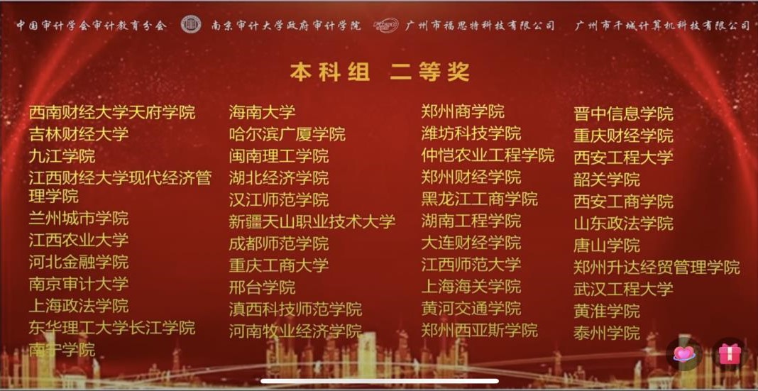 2021年11月14日,由中国审计学会审计教育分会主办、南京审计大学承办的第三届“福思特杯”全国大学生审计精英挑战赛隆重举行。作为全国层次最高、规模最大的审计专业竞赛,旨在弘扬时代精神,通过以赛促学、以学促用、以用育能,尤其是团队合作、沟通技巧、领导能力、综合分析和解决问题能力,发现、培养一批具有创新思维和创业潜力的高端审计人才,检验专业教学成果,推动全国师生交流,为全国高校审计专业培养模式创新、教育教学改革等提供新思路。本届审计精英挑战赛采用线上比赛形式,来自全国一百余所高校的330多支本科生、研究生队伍参赛。大赛分为三大模块,分别考量学生的审计职业素养、专业能力及剖析现实案例等综合能力,最后综合评审确定各级奖项。