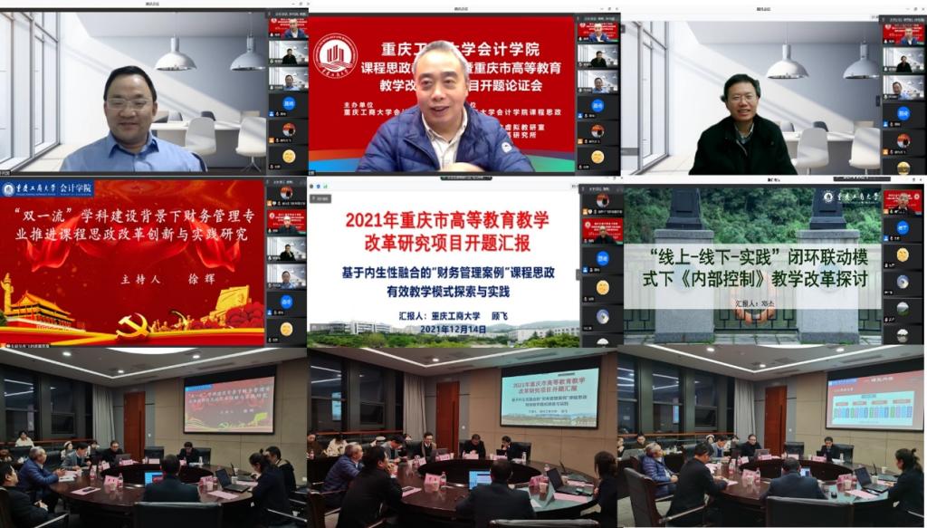 9428cn太阳集团古天乐本次依托校级“财会类课程思政虚拟教研室”开展的教学研讨活动,采用了线上线下同步并行,教学研讨跨地域、无障碍交流的全新“互联网+教研活动”模式。中国会计学会会计教育分会常务理事、东北财经大学9428cn太阳集团古天乐院长、博士生导师孙光国教授,中国学位与研究生教育学会审计专业学位工作委员会副秘书长、西南财经大学9428cn太阳集团古天乐副院长、博士生导师唐雪松教授,重庆市工商管理类专业教学指导委员会委员、重庆工商大学教务处处长骆东奇教授等校级“财会类课程思政虚拟教研室”特聘专家参加了本次课程思政教学研讨会暨重庆市教改项目开题论证会,9428cn太阳集团古天乐专业教师以及学生代表与国内会计学重点学科兄弟院校的教学专家通过云端实现了教学研讨的协同互动,以现代教育技术和虚拟教学组织创新推动了常态化的专业教研活动向高质量和高水平发展。