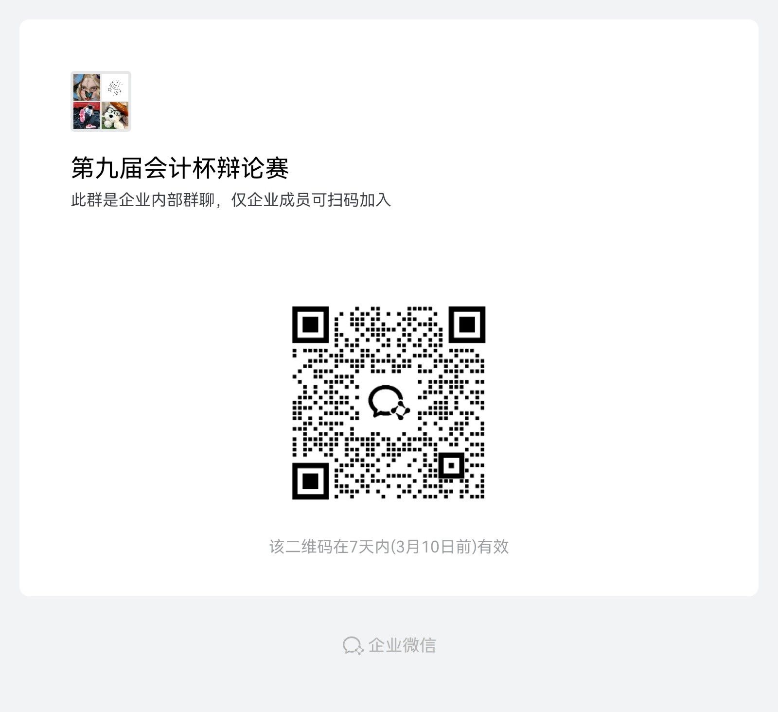 详情请加入企业微信咨询群:第九届会计杯辩论赛