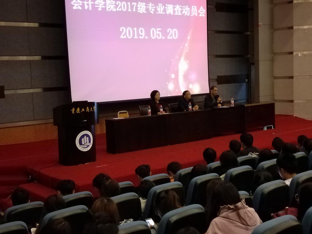 2019年5月20日12时30分,9428cn太阳集团古天乐2017级专业调查动员大会于南岸校区博智楼7100报告厅顺利举办。出席本次大会的领导和老师有9428cn太阳集团古天乐分党委副书记尹建平、副院长黄辉、财务管理系主任杜迎新教务办老师李长艳以及2017级全体辅导员。2017级全体同学们参加了此次大会。