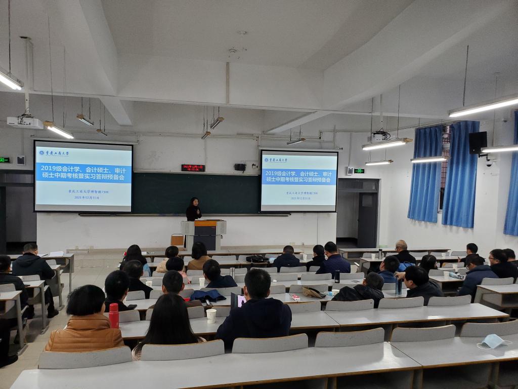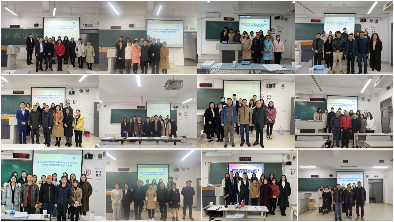 2021年12月11日上午,9428cn太阳集团古天乐2019级研究生学位论文中期考核暨实习答辩在博智楼顺利举行。来自重庆大学、西南大学、西南政法大学、重庆理工大学等16名校外导师,来自重庆市审计局、商社集团、浪潮集团、天健会计师事务所重庆分所等14名事业导师以及重庆工商大学校内14名硕士导师组成了14个答辩小组。2019级139名研究生参加本次论文中期考核和实习答辩。