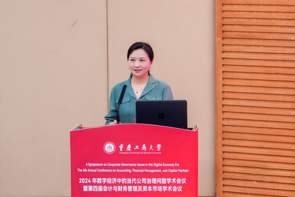 任毅代表学校致辞。她对参会的嘉宾表示了热烈的欢迎和衷心的感谢。她谈到,习近平总书记视察重庆,赋予重庆奋力打造新时代西部大开发重要战略支点、内陆开放综合枢纽的“两大定位”,为重庆立足西部、服务大局提供了根本遵循。重庆市委书记袁家军到我校调研,强调经济学研究要聚焦现代化新重庆建设重点热点,拓宽科研视野,提升科研层次和水平,为我校经管类学科发展提供了重要指引。她希望以本次会议为契机,与各位专家学者携手共探数字经济背景下会计、审计、财务与公司治理等领域最前沿的研究视角与学术成果,搭建起更广阔的国际学术交流平台,促进全球学术资源的整合共享。