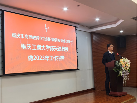 随后,重庆高等教育学会财经教育专委会理事长陈兴述教授代表财经专委会做2023年工作报告。他介绍了财经教育专委会的发展情况,并从开展学术交流、承办学科竞赛、推进校企合作、组织课题申报等角度回顾了财经教育专委会2023年的工作,并介绍了财经教育专委会下一步工作安排。他指出,2024年是全面贯彻落实党的二十大精神的关键之年,是深入实施“十四五”规划的攻坚之年,我国高等教育进入新的起点,财经专业要顺势而为、积极面对,继续坚持“学术立会、服务兴会、规范办会、创新强会”的总方针,从五个方面着手开展特色专项工作,为重庆市高等财经教育领域的教学、科研和产教融合校企合作添砖加瓦。一是深学笃用习近平新时代中国特色社会主义思想,全面贯彻党的二十大精神以及中央经济工作会、市委经济工作会精神,坚定信仰,从中汲取前行力量。二是坚持学术立会,要立足高等财经教育的新形势、新任务,搭建学术交流平台,组织研究全局性、前瞻性、引领性的课题研究、学术交流、课程思政研讨等。三是坚持服务兴会,加强财经教育智库建设。四是积极承办或协办学科竞赛,服务人才培养和学生发展;五是搭建“产教融合校企合作”平台,促进政产学研用深度融合。