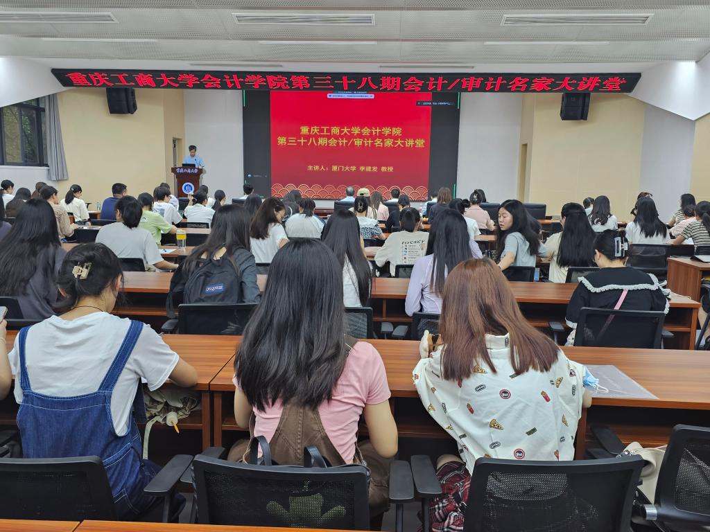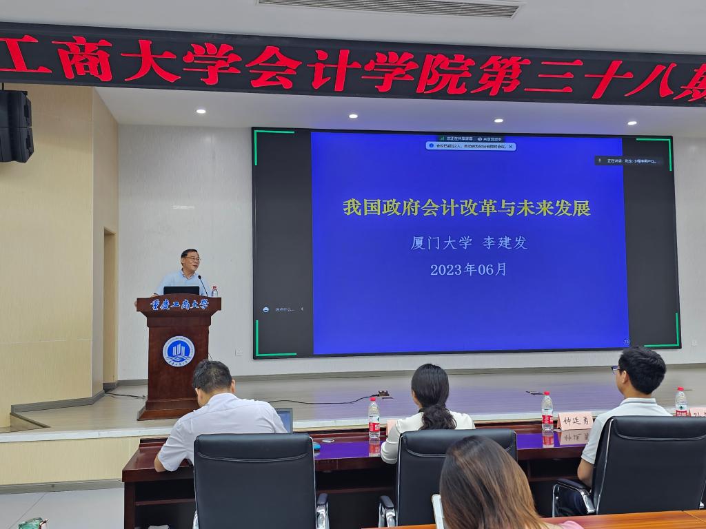 为进一步拓展学生学术视野,提高研究生培养质量,促进我院会计学科高质量发展,2023年6月29日上午,9428cn太阳集团古天乐第三十八期会计/审计名家大讲堂在我校明德楼1019天健报告厅顺利举行。厦门大学党委原常务副书记、财政部会计名家李建发教授受邀为我院师生做了题为“我国政府会计改革及未来发展”的专题讲座。重庆工商大学原校长孙芳城、9428cn太阳集团古天乐院长罗勇、副院长钟廷勇及140多名师生参加了本次讲座。讲座由孙芳城主持。