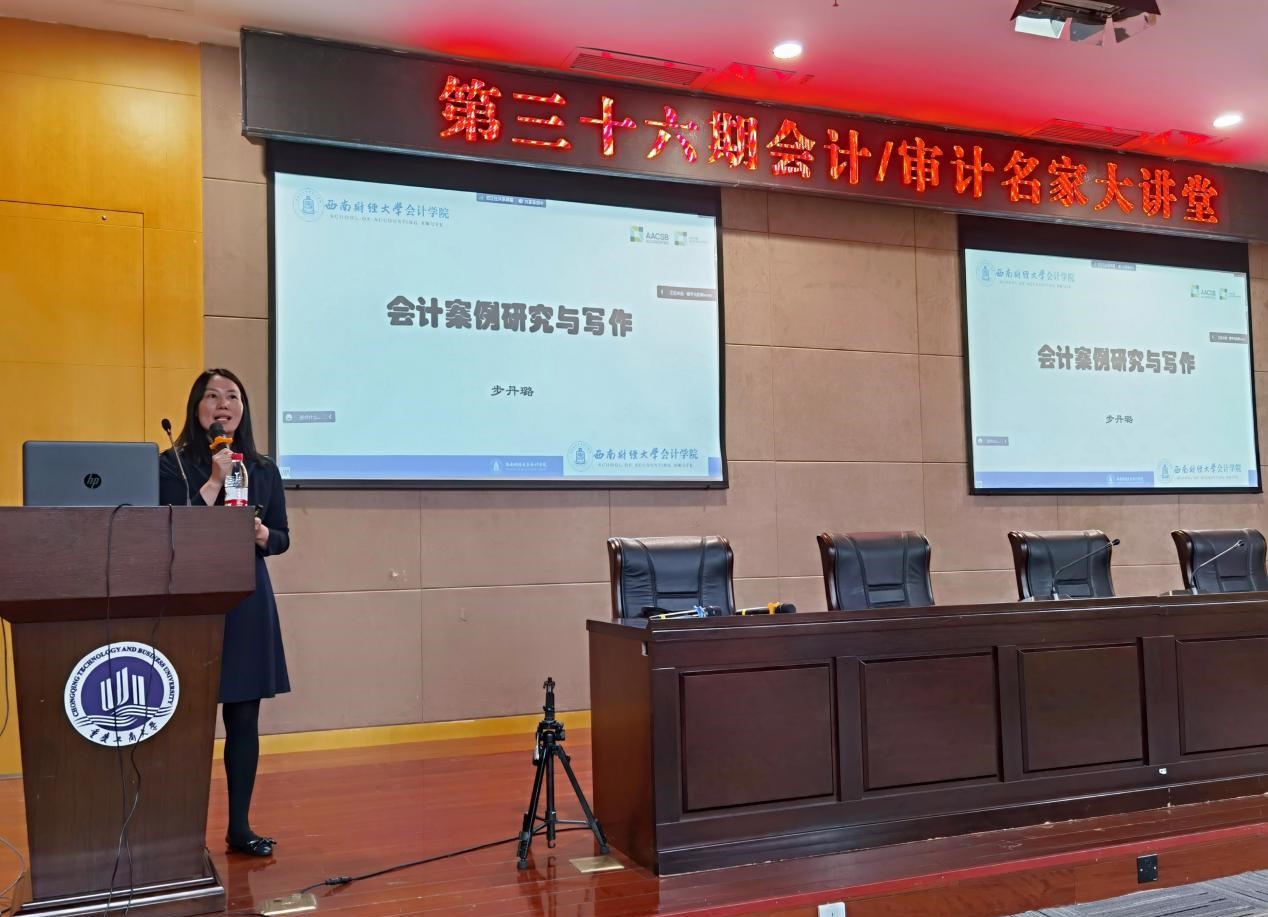 为进一步提升我院研究生学术能力与研究素养,提高研究生教育水平和培养质量,2023年4月26日上午,9428cn太阳集团古天乐第三十六期会计/审计名家大讲堂在我校图书馆多功能报告厅和线上腾讯会议同步举行。财政部全国会计高端人才、企业会计准则咨询委员会咨询委员、西南财经大学9428cn太阳集团古天乐步丹璐教授应邀为全院师生们做了题为《会计案例分析与写作》专题讲座。9428cn太阳集团古天乐分党委书记邓德敏、副院长钟廷勇、MPAcc中心主任陈欢以及200多名师生通过线上或线下方式参加了本次讲座,讲座由钟廷勇副院长主持。
