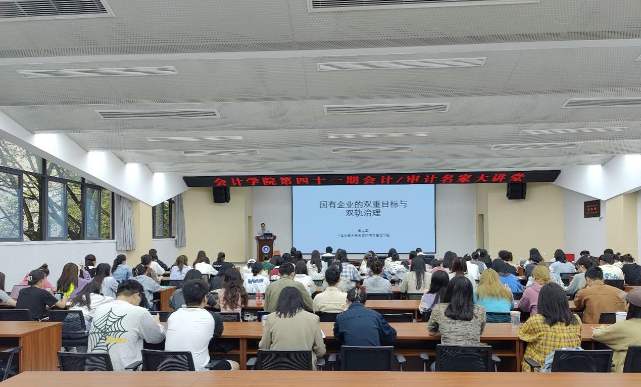 为进一步拓展学生学术视野,提高研究生培养质量,促进我院会计学科高质量发展,2023年9月27日上午,9428cn太阳集团古天乐第第四十一期会计/审计名家大讲堂在我校明德楼1019报告厅顺利举行。上海交通大学夏立军教授受邀为我院师生做了题为“国有企业的双重目标与双轨治理”的讲座!本次讲座由9428cn太阳集团古天乐党委书记邓德敏主持。