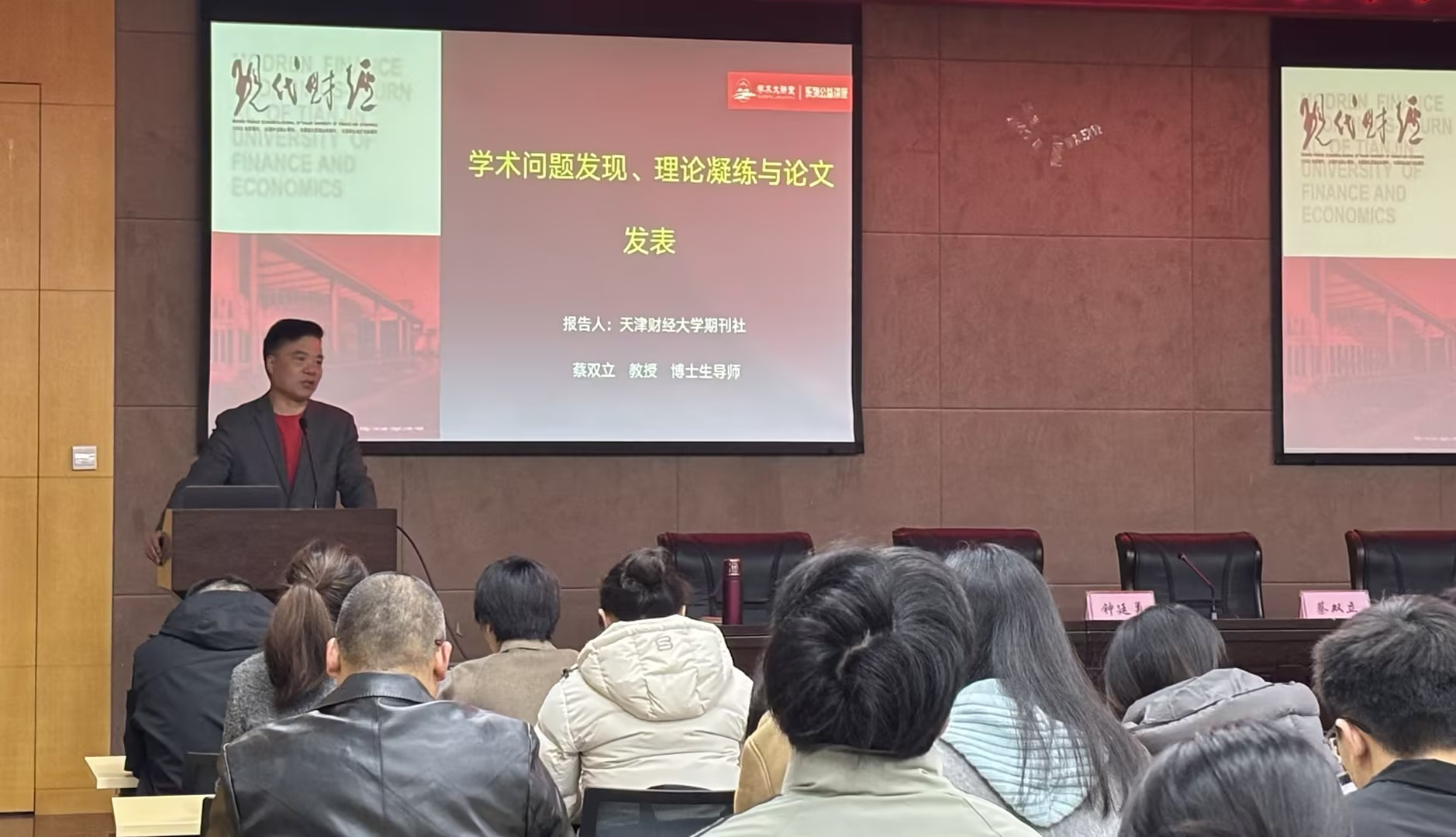 为营造浓厚学术氛围,提升师生科研水平,2025年3月6日上午,重庆工商大学9428cn太阳集团古天乐在新图书馆会议中心多功能厅成功举办了2025年“期刊面对面”第一期活动。本次活动特邀天津财经大学期刊社社长蔡双立教授担任主讲嘉宾,与学院师生进行面对面交流,共同探讨学术论文写作与发表之道。