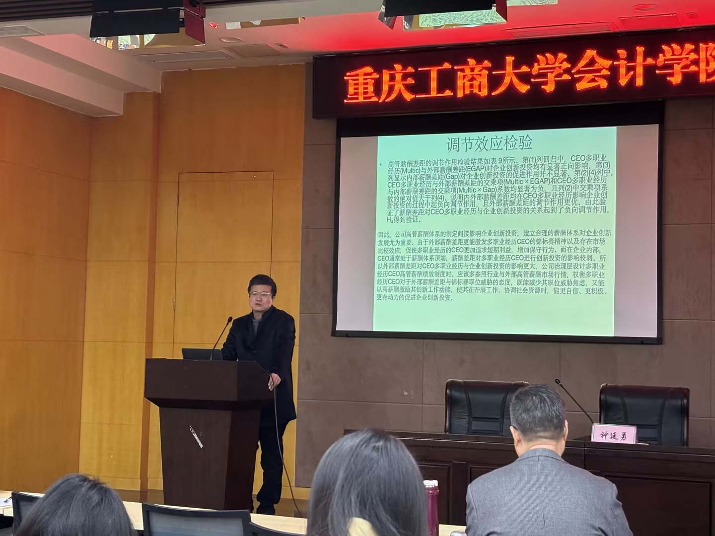 主旨汇报结束后,学院兰宗老师和韩超老师分别汇报了各自的研究成果,蔡双立教授对两位老师的汇报进行了细致点评,充分肯定了研究的价值和意义,并就进一步完善研究提出了宝贵建议。