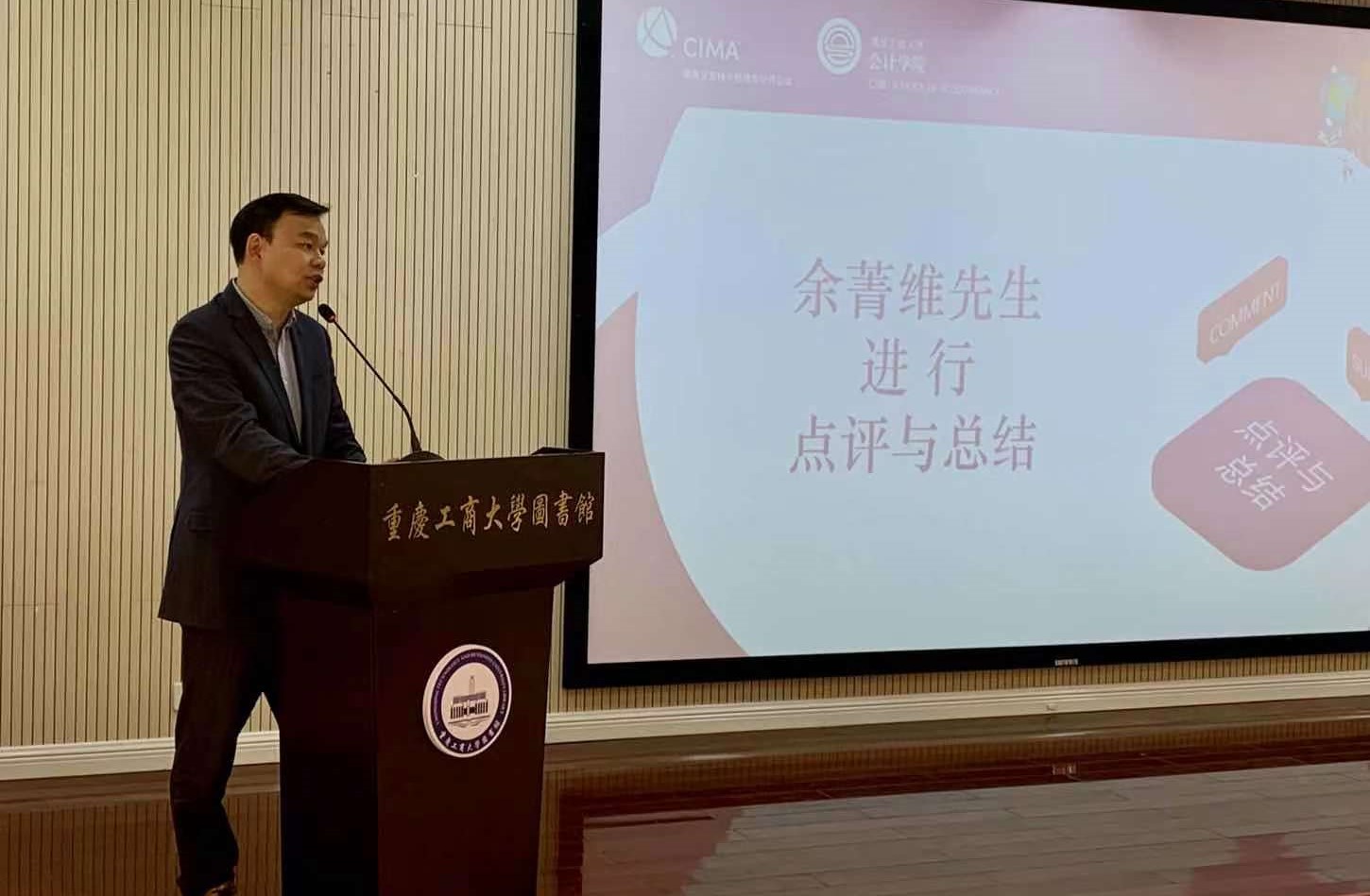 在整个比赛过程中,各队选手都准备充分,案例展示PPT各有千秋,案例分析方法新颖别致,回答评委提问沉稳流畅,赛出了学院国际项目学子的风采,显示了扎实的基本功。CGMA中国大陆首席代表余菁维先生对比赛进行了点评与总结,他认为本次比赛较好地展现了重庆工商大学学生的知识水平和综合能力,特别是财务知识和英语水平,同时勉励同学们在以后的学习中要提高写作能力和公共演讲能力。