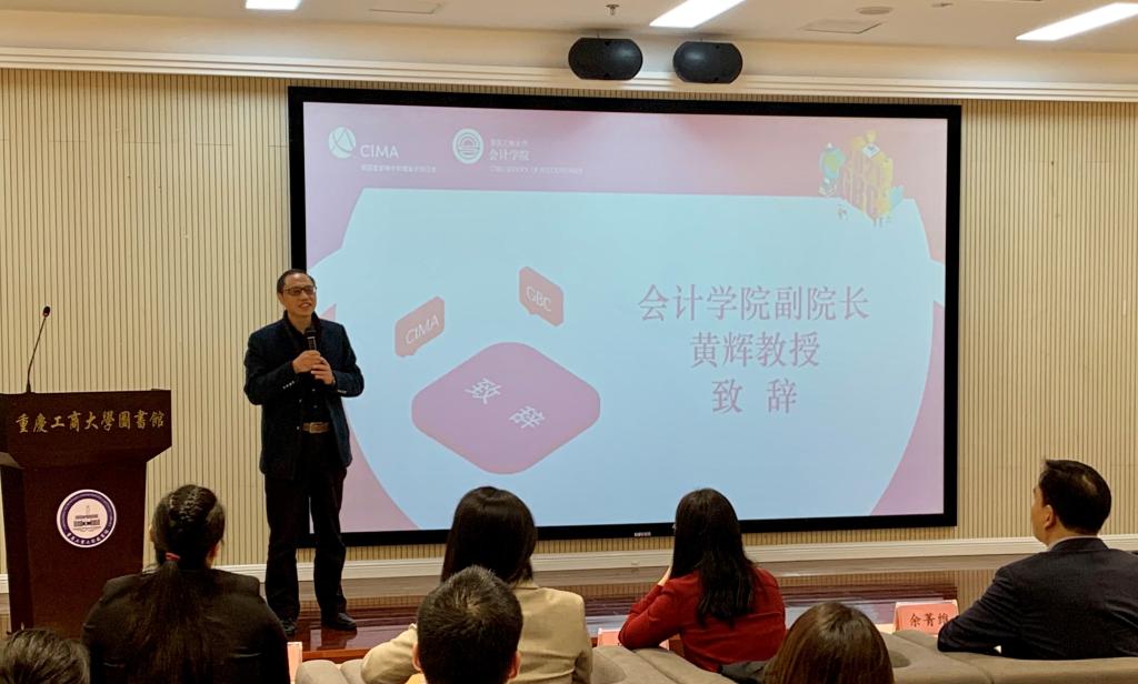 比赛正式开始之前,黄辉副院长发表了热情洋溢的讲话。他首先代表学院对各位嘉宾和评委的到来表示欢迎与感谢!同时指出CGMA商业精英国际挑战赛非常契合我校“三型一化”的人才培养,锻炼与检验参赛选手的应用能力、创新能力、综合素质与国际化视野,鼓励同学们融通课程学习与课外竞赛,面对百年未有之大变局,争做国家需要的高端国际化会计人才,希望各位参赛选手赛出水平、赛出友谊,并祝愿CGMA商业精英挑战赛校内赛圆满成功。