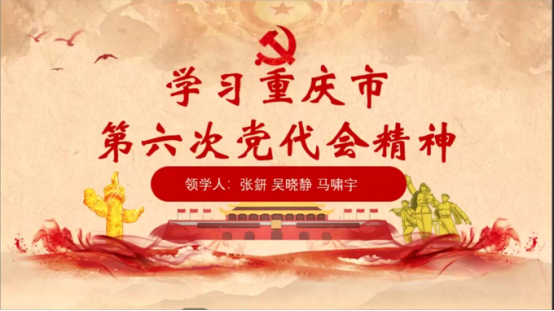 首先,张鈃、马啸宇、吴晓静三名同志带领支部全体党员学习解读了重庆市第六次党代会精神,分别从重庆市第六次党代会情况简介、深入学习重庆市第六次党代会报告两个部分展开学习,并就奋力谱写多彩重庆现代化建设新篇章发表感想并总结。