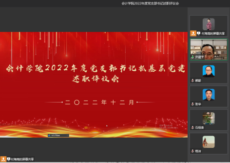 会议伊始,尹建平宣读了《关于开展2022年度基层党组织书记抓基层党建述职评议考核工作的通知》,强调此次述职评议考核的内容和流程。随后,9位党支部书记按照上级关于述职工作有关要求,汇报一年来履职情况,认真梳理存在的问题,明确下一步工作打算。会上,党委书记邓德敏、专职组织员尹建平、党委副书记郝颖分别根据述职情况,结合平时工作实际,逐一进行了点评,指出短板和问题,提出今后努力的方向。最后,全体与会人员按照要求,对各支部书记的述职情况进行了综合评议。