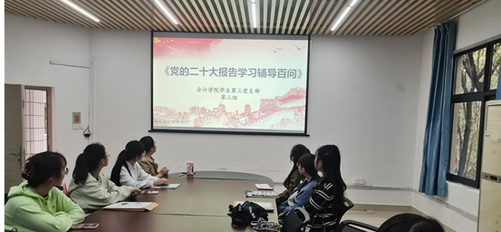 随后,吕良沁淇同志做了题为“党的二十大报告学习辅导百问”微党课讲解,这是支部开展理论学习的特色工作之一。读懂中国式现代化是全体人民共同富裕的现代化,才能坚持好、运用好继续推进理论创新的“六个必须坚持”。作为党员,才能更好理解“坚持人民至上”宗旨的力量。
