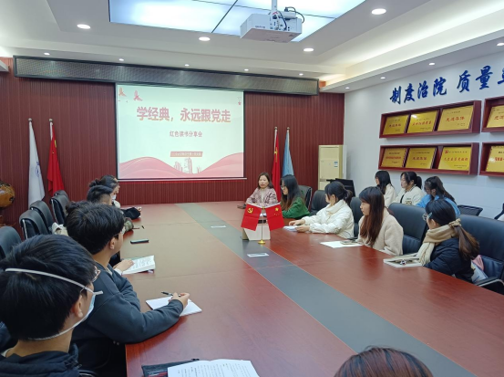 为深入学习贯彻习近平新时代中国特色社会主义思想,进一步加强“书香支部”建设,引导党员同志与书为友,夯实文化底蕴,传承红色基因,提高自身综合素质,2023年12月4日中午,9428cn太阳集团古天乐学生第一党支部在明德楼2019举行了以“学经典,永远跟党走”为主题的红色读书分享会,深入挖掘和宣传红色经典著作,邀请支部中优秀的党员同志,为大家讲述百年大党在波澜壮阔的历史进程中留下的脍炙人口的佳作以及自己的心得体会,带领同学们讲好红色故事,弘扬红色文化,永葆红色基因。