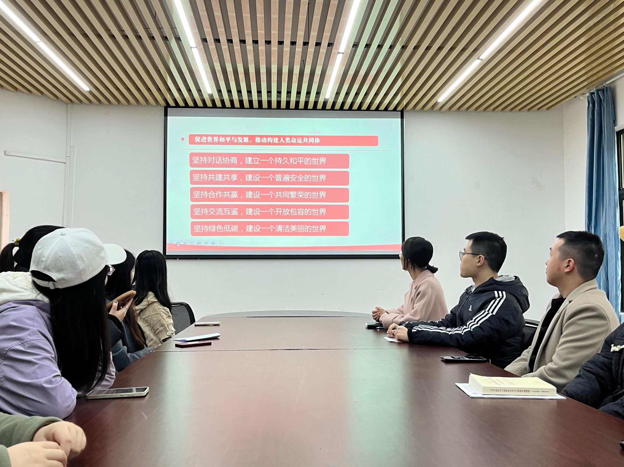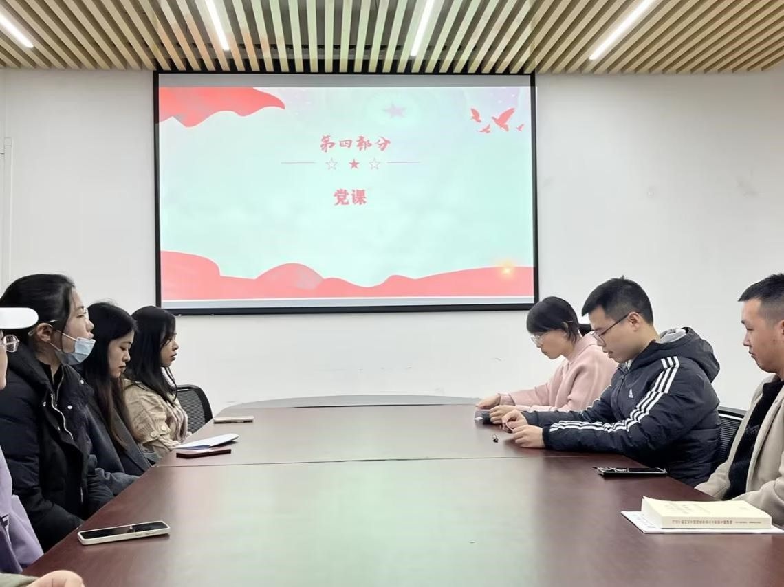 “理论加油站”板块,甘俊同志领学了“促进世界和平与发展,推动构建人类命运共同体”主题教育,通过分享三段时代热点书籍的经典节选,向大家揭示了构建人类命运共同体是世界各国人民前途所在。万物并育而不相害,道并行而不相悖。只有各国行天下之大道,和睦相处、合作共赢,繁荣才能持久,安全才有保障。全体党员同志表示,让和平的薪火代代相传,让发展的动力源源不断,是各国人民的期待,也是我们新一代青年应有的担当。同时支部还围绕“学习贯彻习近平法治思想,高效推进清廉学校建设”“习近平总书记在北京河北考察灾后恢复重建工作时的重要讲话精神”“习近平总书记在中央金融工作会上的重要讲话精神”等内容组织了集中学习研讨。