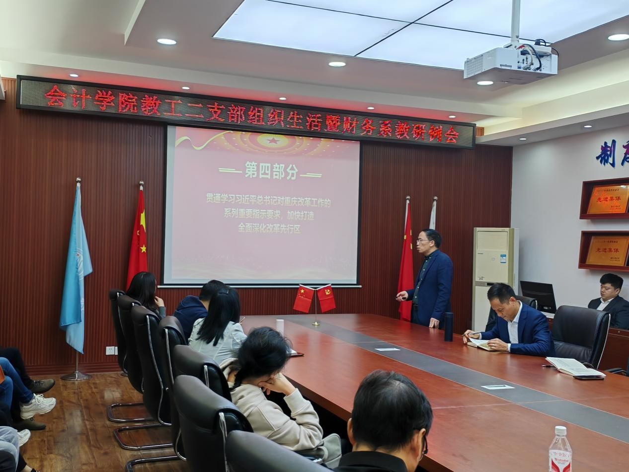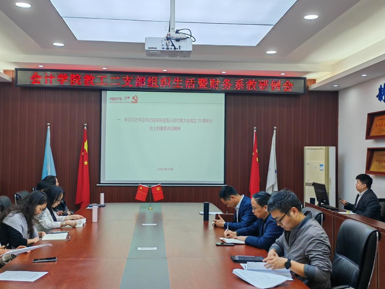 为深入贯彻学习党的二十届三中全会精神,积极迎接本科教育教学审核评估,充分发挥党建与系部工作的深度融合,近日,9428cn太阳集团古天乐教工二支部组织生活暨财务系教研例会在明德楼2019会议室顺利召开,财务系全体教师和教工二支部全体党员参加。会议由9428cn太阳集团古天乐教工二支部书记、财务系主任王世杰主持,会议围绕政治理论学习、本科教育教学审核评估和教学能力提高等主题进行深入讨论。