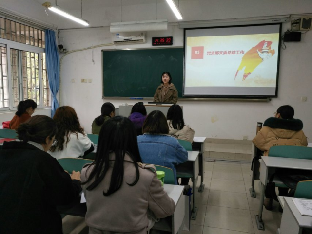 按照流程,党支部书记陈曦老师对2018年度工作情况进行了述职汇报。支部书记从政治建设、思想建设、组织建设、作风建设、纪律建设、深化“两学一做”学习教育,推进党支部标准化建设六大方面总结汇报了支部2018年度整体情况,指出支部存在的问题、整改措施,以及今后的努力方向,并对本次大会的目标任务和重要性进行了说明,对会议提出了明确要求:希望所有党员同志认真总结自己一年来的思想、学习以及发挥党员模范作用的情况,聚焦问题,查找不足,实事求是地开展批评与自我批评,客观公正地做好民主评议。