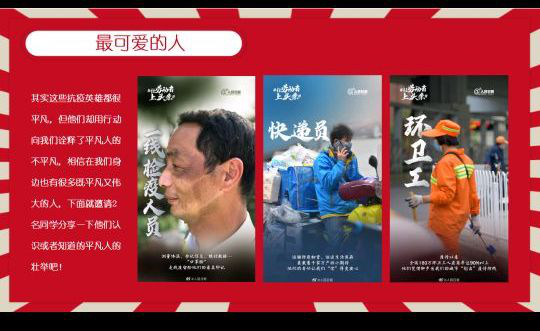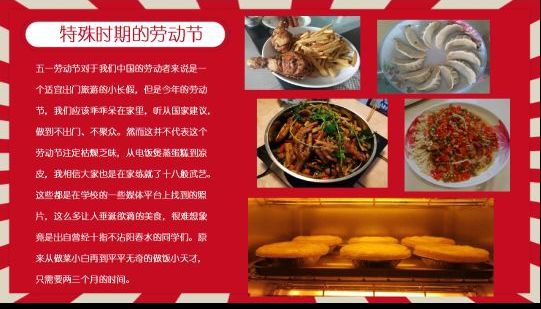 本次主题党日活动分为“了解劳动节的由来”、“最可爱的劳动者”和“特殊时期的劳动节”三个板块。活动以“了解劳动节的由来开始”,引导同学们知晓了劳动节的历史和意义;接下来,同学们分享了在新冠肺炎疫情期间奋战在一线的劳动者的感人故事,有的故事来自于网络,有的故事就来自于同学们身边的亲人,同学们积极发言,讲述了平凡人那些不平凡的事迹。接着,同学们在“特殊时期的劳动节”板块里,积极分享了自己在家参与劳动的事迹,有的同学学会了做菜的新技能,有的同学参与了整理家务的活动,还有的同学投入到社区服务中……大家为自己成为一名劳动者而自豪。活动最后,陈曦老师倡议,五一假期要多帮助父母分担家务,履行自己肩上的责任和义务。