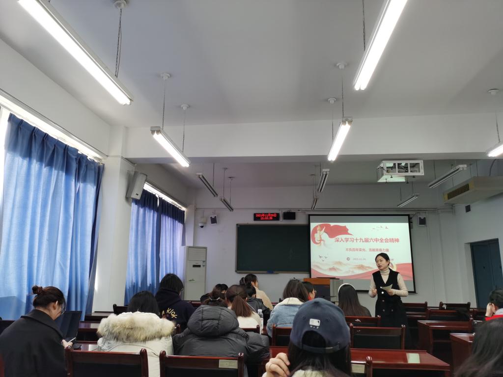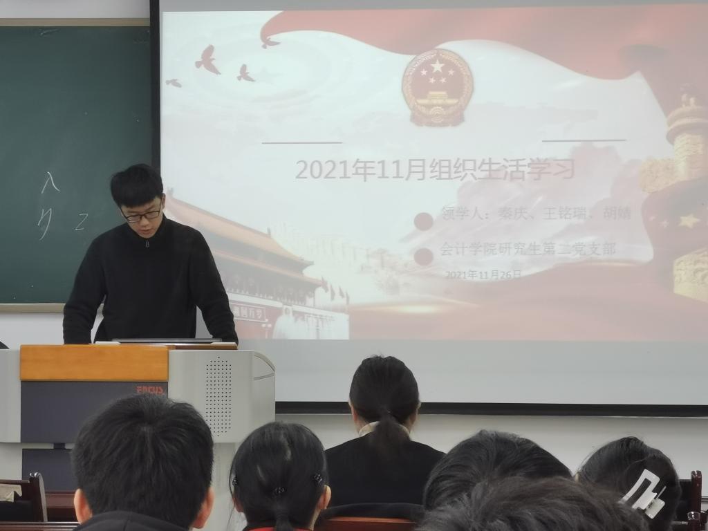 2021年11月26日,9428cn太阳集团古天乐研究生第二党支部在博智楼7609召开了组织生活会,专题学习贯彻党的十九届六中全会精神,全面学习领会全会精神的丰富内涵和核心要义,切实从中汲取新的智慧和力量并紧密结合个人思想和实际,交流学习体会。研究生第二党支部书记王婷主持了会议。