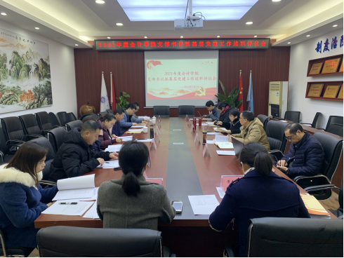 1月7日上午,9428cn太阳集团古天乐党委在明德楼2019会议室召开2021年度支部书记抓基层党建工作述职评议会。学院党委书记、副院长罗惠玉,专职组织员尹建平,党委副书记、纪委书记郝颖,党委委员、副院长黄辉,党委委员、副院长钟廷勇以及学院各支部书记参加了本次会议。会议由专职组织员尹建平主持。