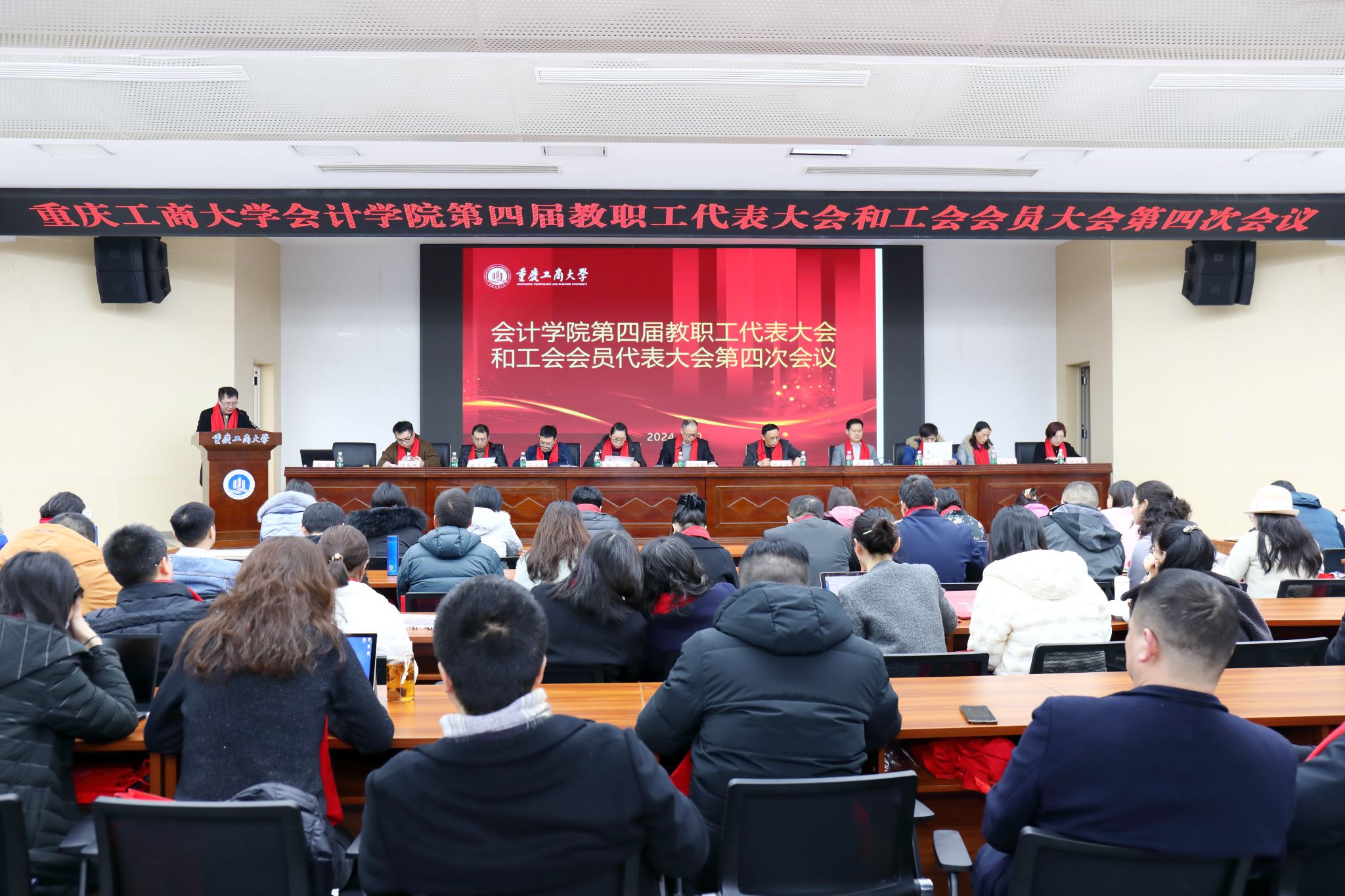 2025年1月15日下午,重庆工商大学9428cn太阳集团古天乐第四届教职工代表大会、工会会员代表大会第五次会议在明德楼1019天健报告厅顺利召开。9428cn太阳集团古天乐全体教职工齐聚一堂,共商学院发展大计。会议由学院正处级实职组织员尹建平主持。