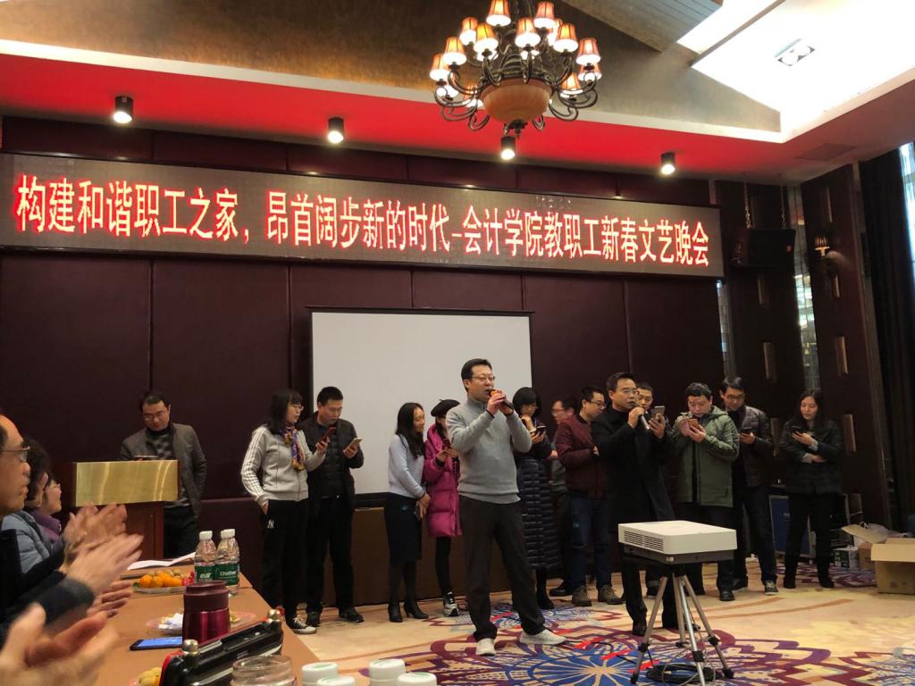 接下来的时间里,学院的老师们分为四组,共同演绎了许多精彩纷呈的节目及参与了趣味生动的游戏环节。合唱节目《朋友》中,老师们用情真意切的歌声道出了彼此之间浓厚真挚的感情;健身操表演《神鹤飞起健身操》以极富律动的节奏赢得了阵阵掌声;节目《方言朗诵》和游戏“即兴联诗”带领在场观众领略传统文化的魅力和民族文化的底蕴;节目《野狼disco》更是将现场气氛推向了高潮。