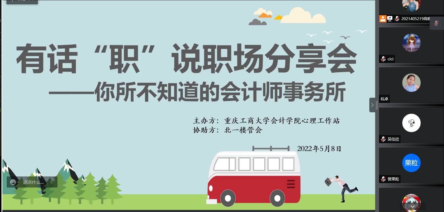 为帮助同学们有效解决专业学习、职业生涯成长中的困惑,让同学们提前了解职场环境和能力需求,更好地为求职做准备,2022年5月8日19:009428cn太阳集团古天乐心理工作站线上展开了有话“职”说职场分享会。本次活动邀请到我院优秀毕业生,现任北京字节跳动科技有限公司财务bp,曾担任德勤华永审计经理——郭海龙为同学分享他的职场经验。本次活动共吸引了近300位同学积极参与。