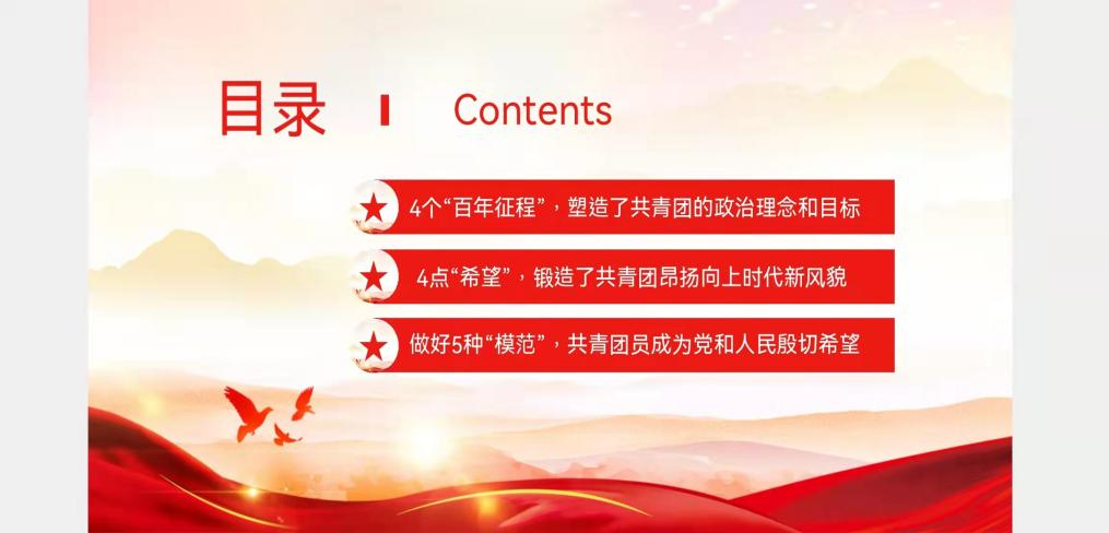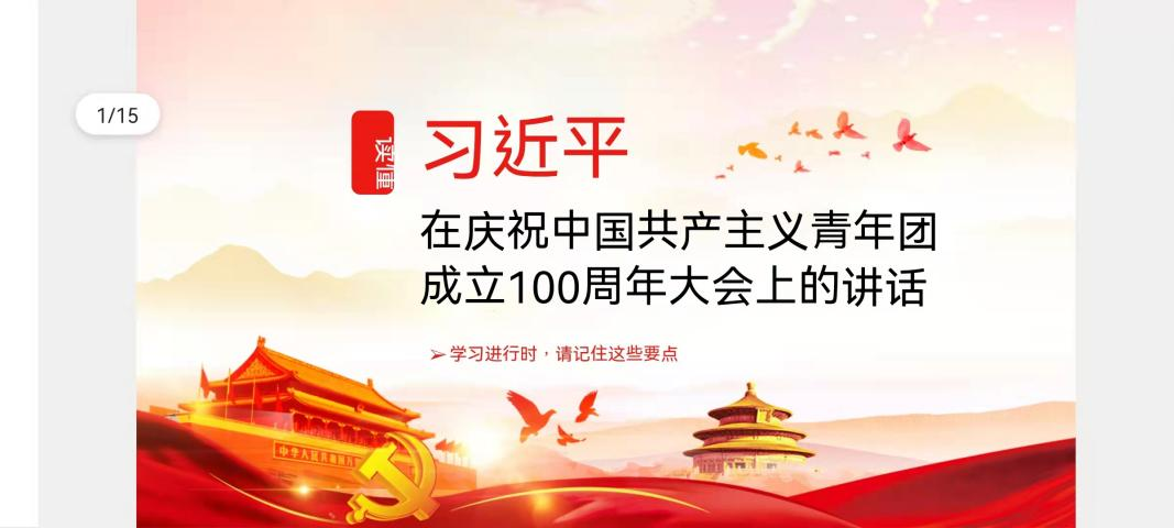 会上,全体成员观看了习近平总书记在庆祝中国共产主义青年团成立100周年大会上的重要讲话,习总书记的讲话全面回顾了共青团的发展历史,科学总结了中国共青团成立、发展的重大历史意义,对新时代的青年提出了要做五个方面的模范,寄语新时代中国青年要继承和发扬革命精神,坚定理想信念,站稳人民立场,练就过硬本领,投身强国伟业,表达了以习近平同志为核心的党中央对青年的关怀和厚望,号召广大青年要传承延安精神,赓续红色血脉,青春向党不负人民,让青春在奋斗中焕发出绚丽的光彩。
