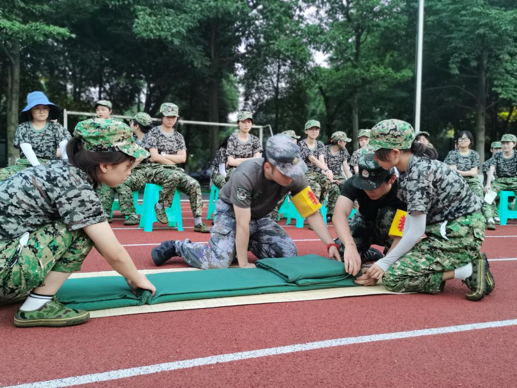 阳光明媚,学子们都面对阳光在站军姿。重庆七月的太阳,晒在皮肤上是干干的,眼睛都睁不开。这是我深有感触的。但无论谁都没有退缩,在跟太阳作战。在站军姿中,学子们付出努力越高就站得越好。齐步、跑步,敬礼等训练都是很耗体力的活动,只要认真去做就能走齐、跑齐。内务训练亦如此,就拿叠被亦是如此,压被压的时间长,被就薄;扣被扣的时间长,被就能更好成形。