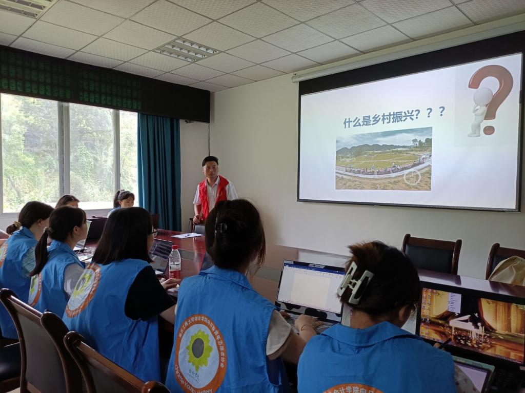 为响应习近平总书记“发扬历史主动精神,以实际行动迎接党的二十大胜利召开”的号召,7月8日下午6时,9428cn太阳集团古天乐2022年暑期“三下乡”发展成就观察团联合重庆慈众社会工作服务中心在重庆市巴南区东温泉镇黄金林村党群服务中心开展“共溯发展路,同寻桃源里”——发展调研讨论会,重庆慈众社会工作服务中心社工叶茂国担任主讲人。