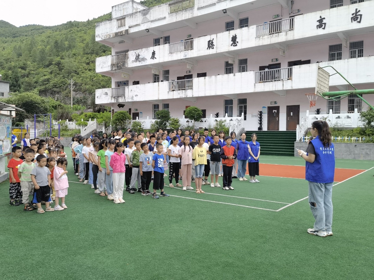 2022年7月18日上午,“益路与童行,奋进新征程”暑期支教开营仪式在重庆市武隆区双河镇中心小学校操场成功举办。双河镇中心小学校长程卫红、“益暖童心”公益课堂的活动负责人张佳媛、“益路同行,童心向党”暑假支教团队全体成员以及参加活动的所有学生共同参与了本次开营仪式。
