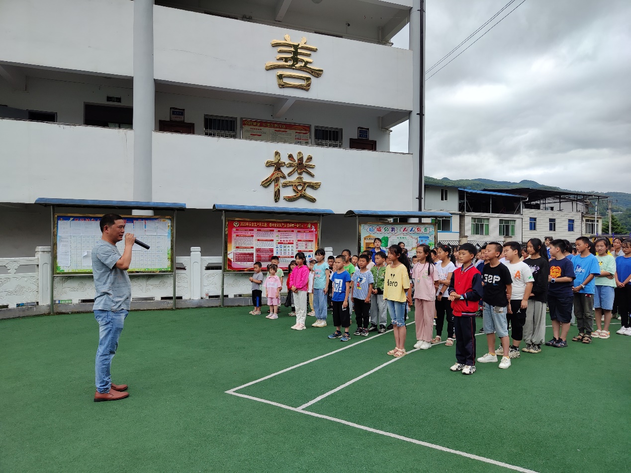 仪式上,程卫红校长对“益路同行,童心向党”暑假支教团队的到来表示热烈的欢迎和由衷的感谢。他表示,本次支教活动的开展意义重大。一方面来说,支教活动的开展为双河镇中心小学的同学们和各地的小朋友提供了一个难得的机会,一个让孩子们学习知识、增长才干的机会,一个让孩子们丰富日常活动、充实暑假生活的机会。另一个方面来说,各位志愿者将在这里经历由求知问道的大学生向传道受业的教育者的角色转变,这也是志愿者们进入社会之前一次不可多得的实践体验,是对大家能力和意志的锻炼,是对志愿综合素质的全方面考验。少年若天性,习惯成自然。他希望同学们在这里不仅能够学习知识、增长才干,更能通过各位志愿者老师增长见识、开拓视野、学习人生经验、培养良好习惯。枫林新叶催陈叶,雏凤清于老凤声。他期待志愿者们都能成为奔涌的后浪,为新时代培育新希望,助力国家建设和社会建设,为祖国的繁荣富强贡献自己的力量。最后,他祝愿本次活动取得圆满的成功,双方都能在本次支教活动中学有所获,学有所得。